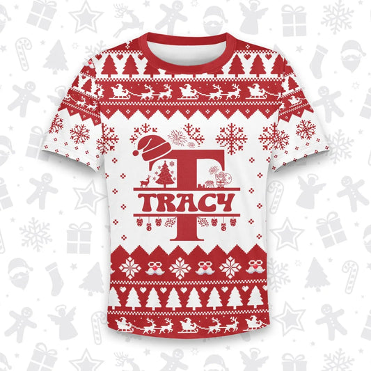 TRACY Personalized Christmas T-Shirt Pajama Set - Holiday Gift Outfit 13K1-CR2